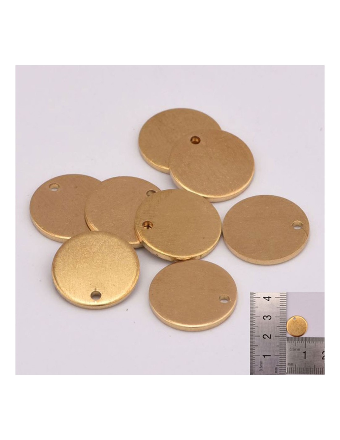 Ciondoli rotondi piatti in ottone naturale da incidere, di diametro 12mm e spessore 1mm.