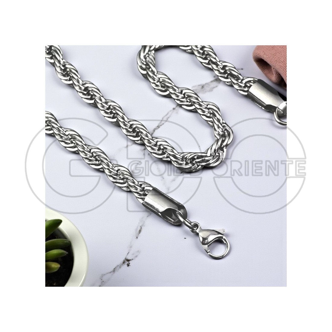 Collana dalla maglia attorcigliata spessa 7mm in solido acciaio inossidabile, disponibile di lunghezza 50cm e 60cm.