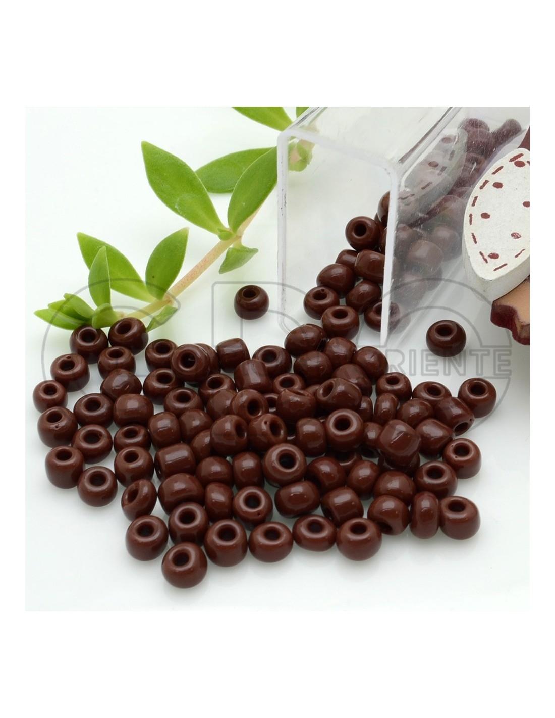 Perline di conteria in vetro lucido, colore marrone legno, in doppia misura 3mm e 4mm. Perfette per decorazioni delicate, bijoux vintage o etnici. Ideali per abbinamenti con metallo dorato o rame e per lavorazioni con filo sottile o nylon.