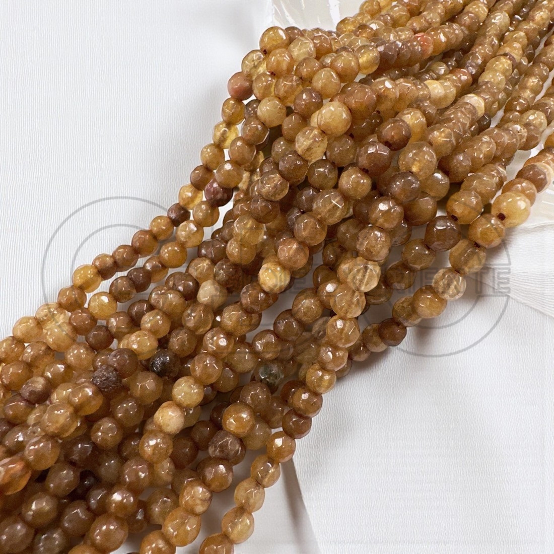 Filo di agata sfaccettata colore marrone, di diametro di 4 mm. Ogni filo è lungo circa 38cm e contiene 94-97 pezzi.