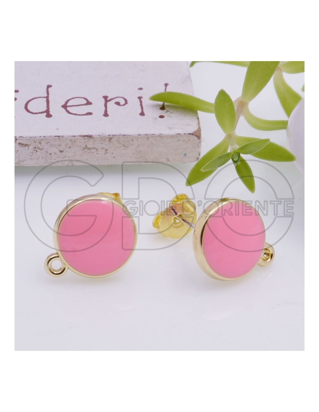 Base orecchini tonda smaltata con perno 10mm 1 paio - rosa pesca | GDO