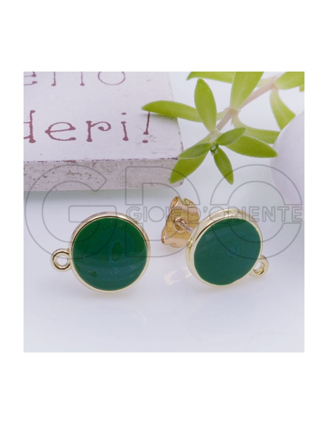 Base orecchini tonda smaltata con perno 10mm 1 paio - verde ufficio | GDO