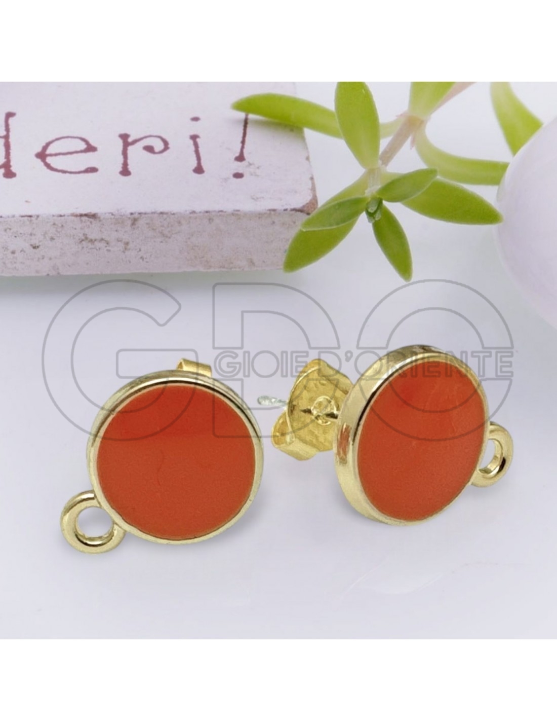 Base orecchini tonda smaltata con perno 10mm 1 paio - arancione | GDO