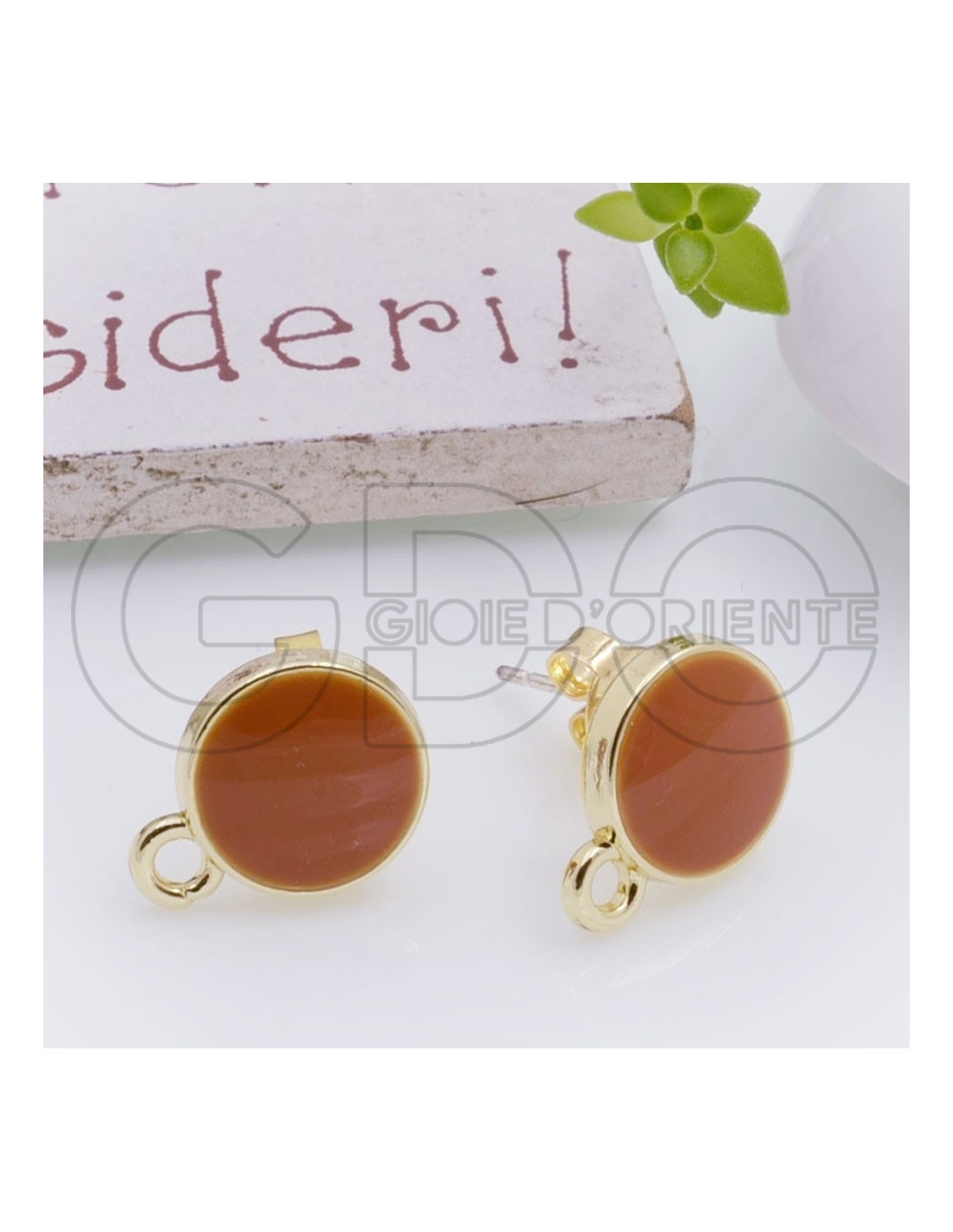 Base orecchini tonda smaltata con perno 10mm 1 paio - camelia | GDO
