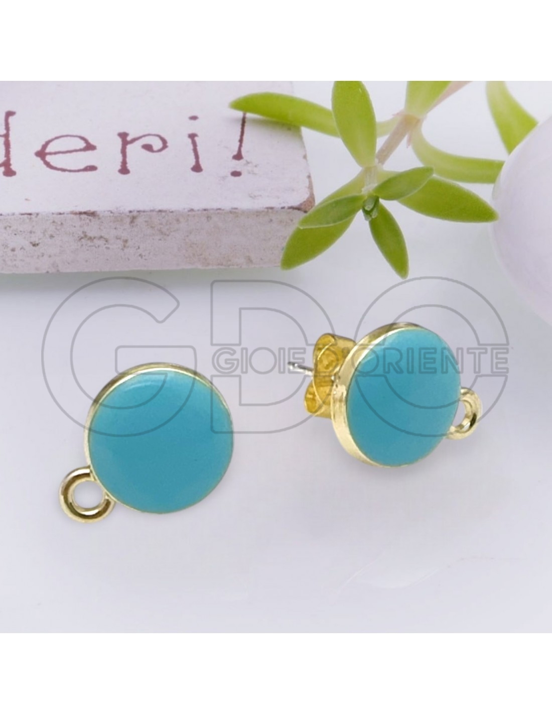 Base orecchini tonda smaltata con perno 10mm 1 paio - turchese | GDO