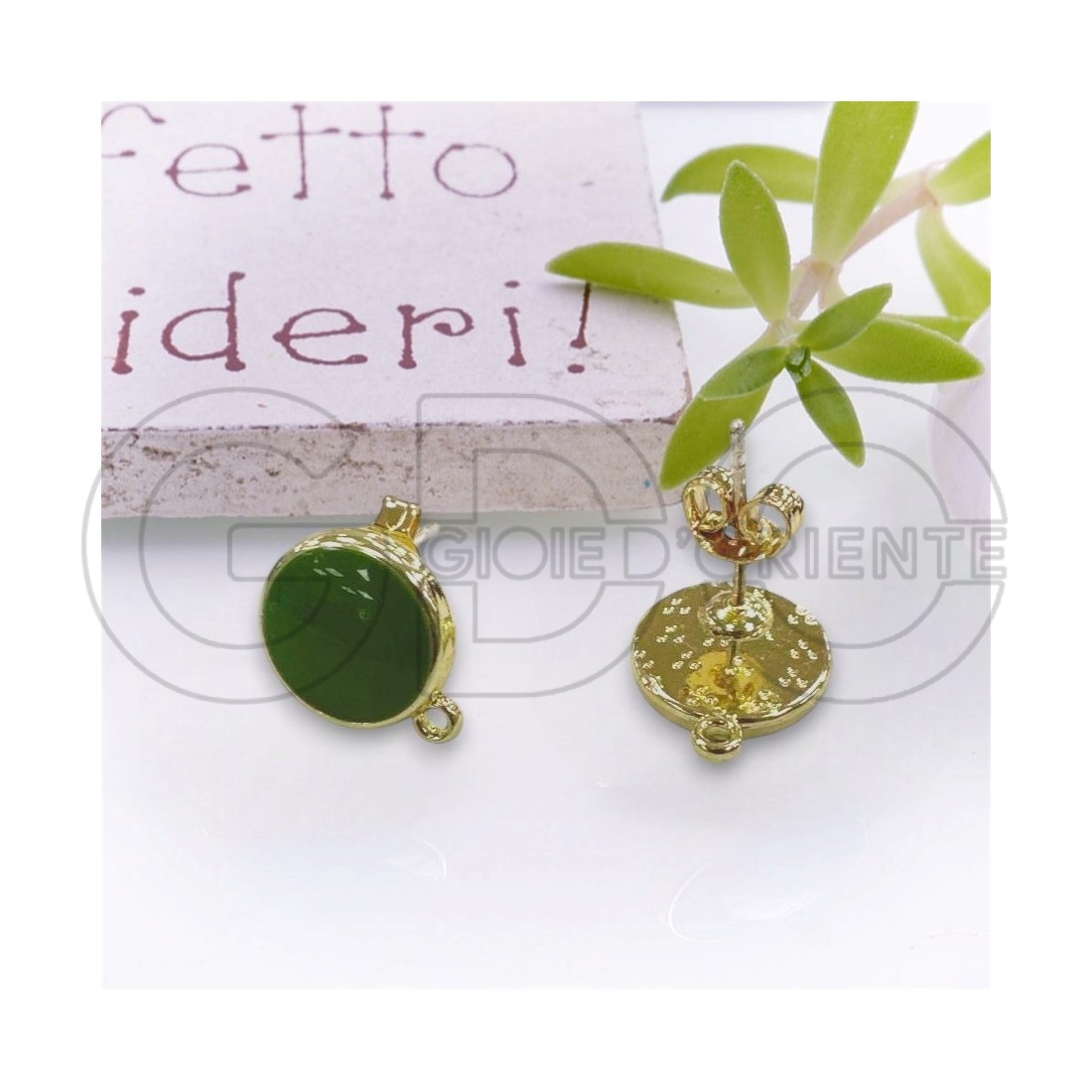 Base orecchini tonda smaltata con perno 10mm 1 paio - verde militare | GDO