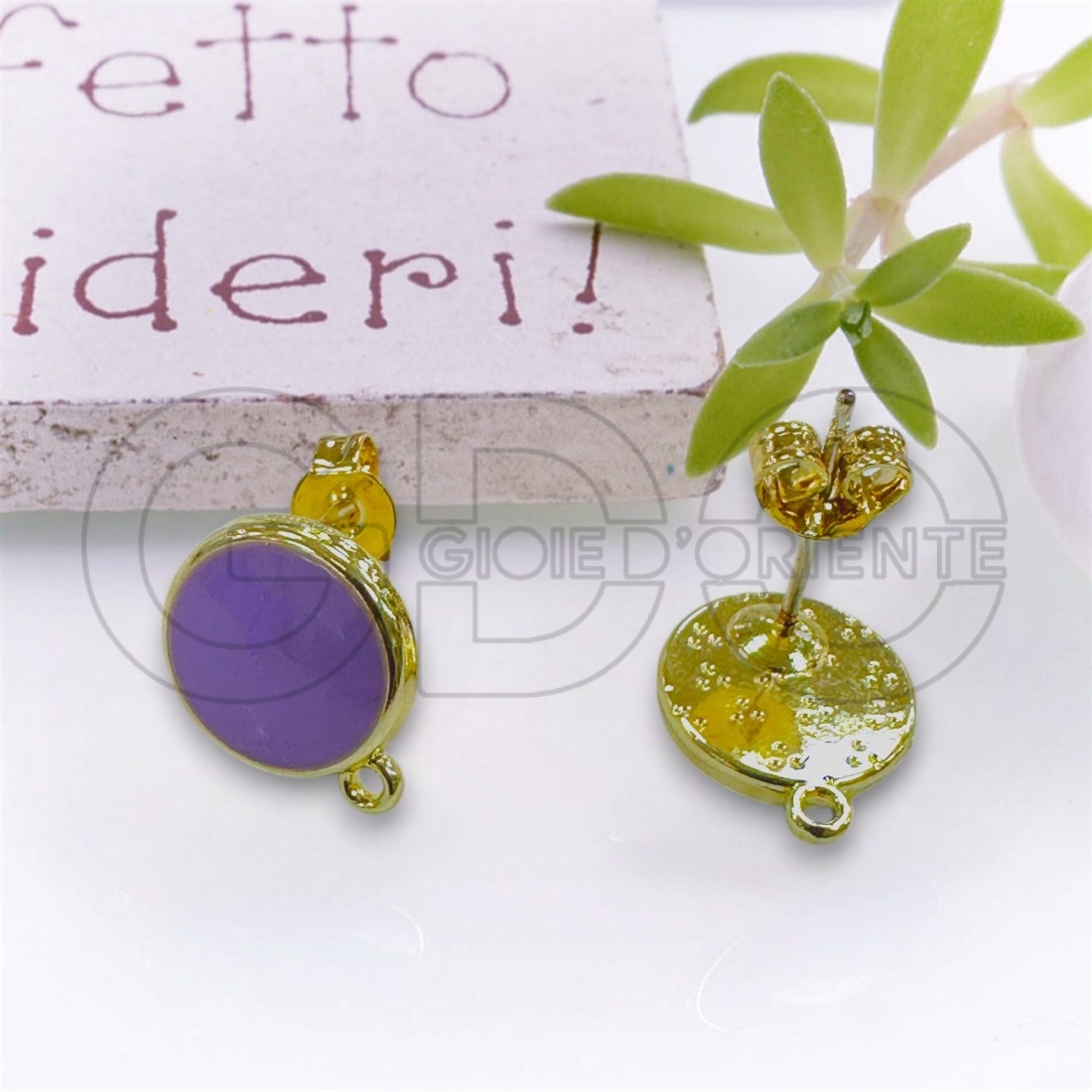Base orecchini tonda smaltata con perno 10mm 1 paio - lilla| GDO