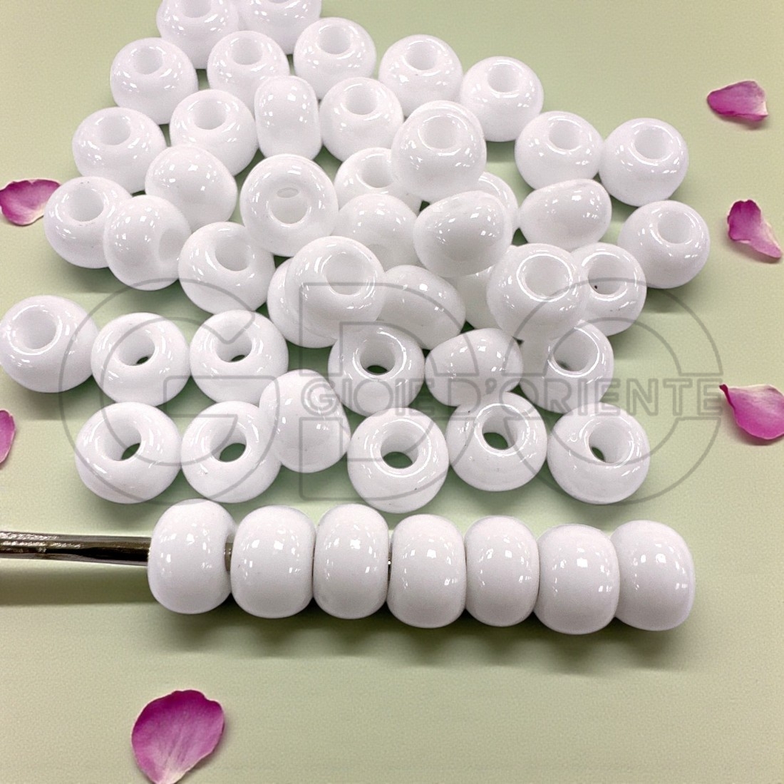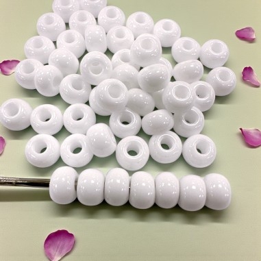 Perline in vetro bianco con foro largo, disponibili in 2 misure.