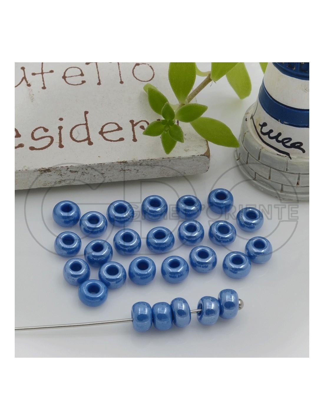 Perline di vetro a rondella molto luminose con foro largo colore azzurro scuro 3x4mm 70pz | GDO