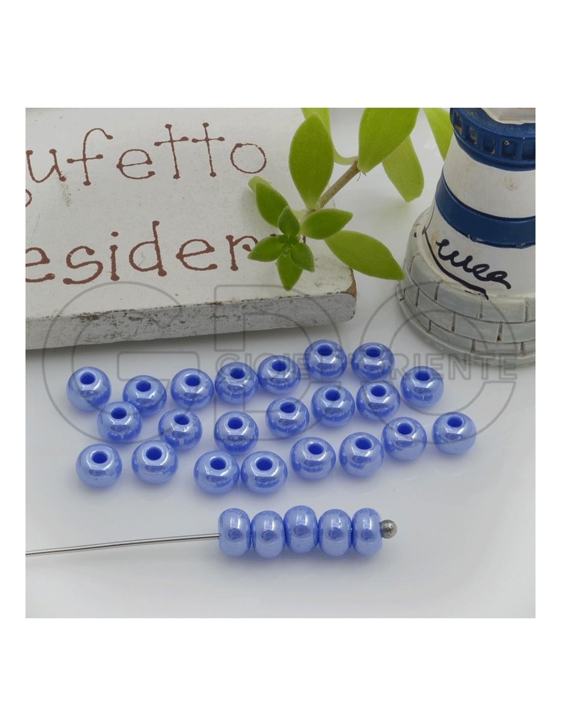 Perline di vetro a rondella molto luminose con foro largo colore cielo scuro 3x4mm 70pz | GDO