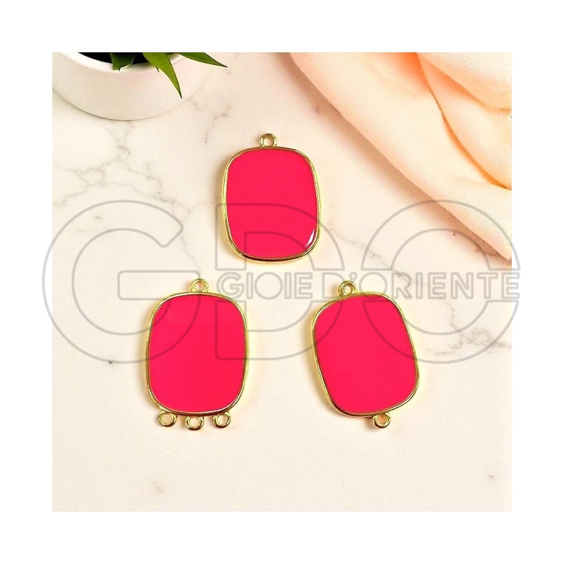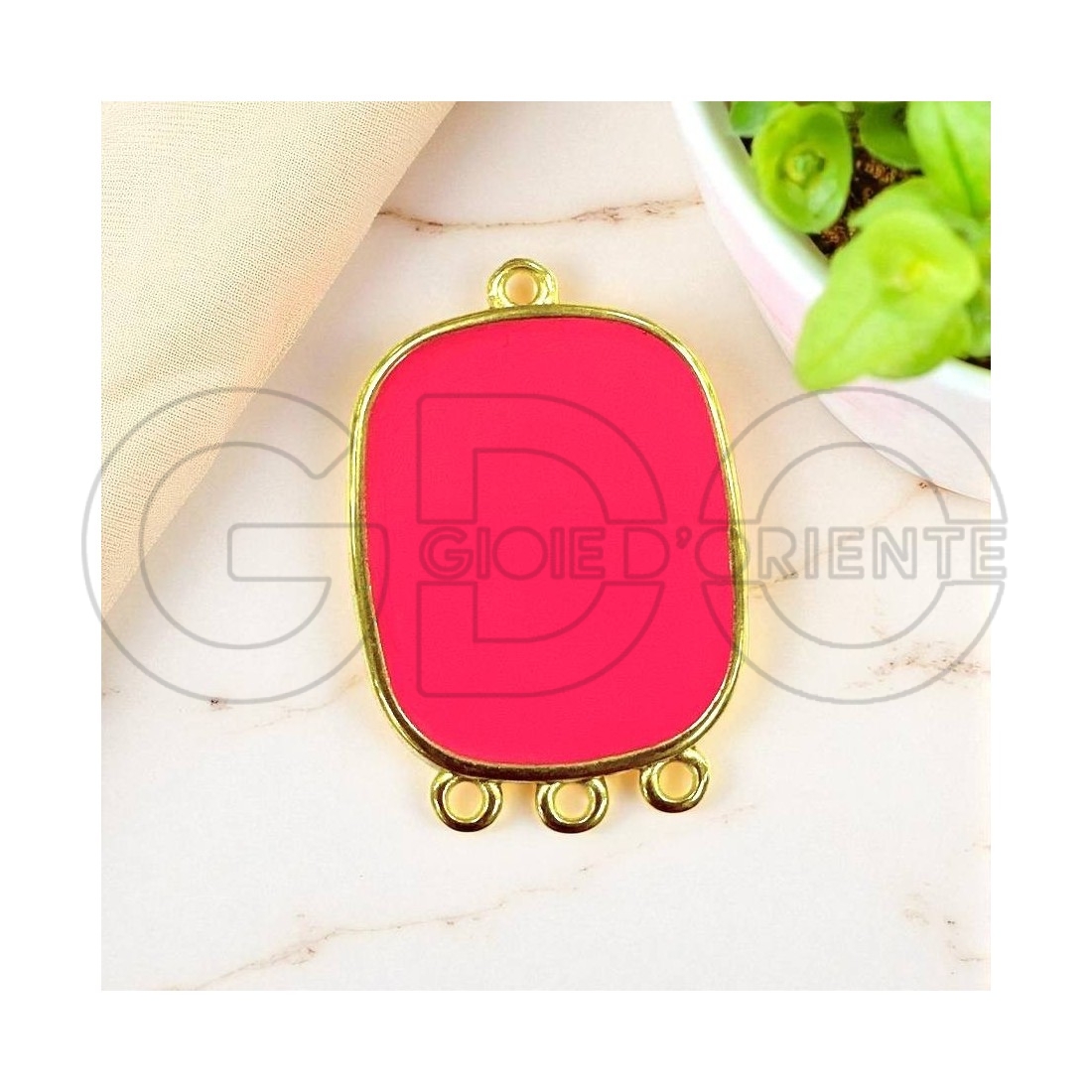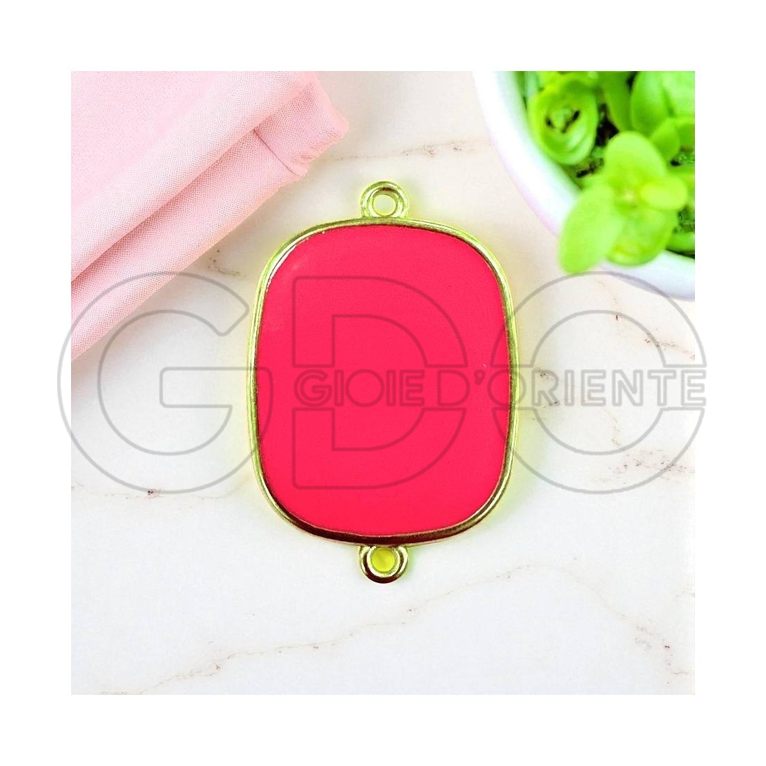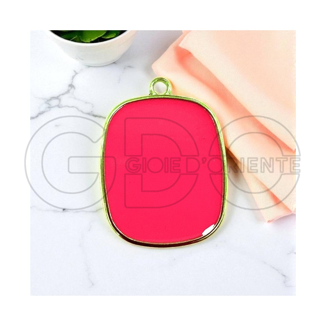 Ciondolo piastra in resina Rosa ciclamino e Acciaio dorato 22x30mm - Vari modelli