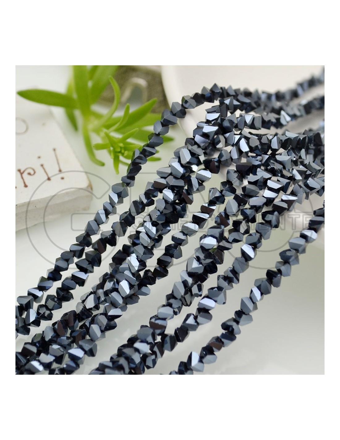 Fili di cristalli sfaccettati a forma piramidale colore Jet Hematite di circa 2.5mm con circa 150 pezzi. Crea gioielli luminosi e distintivi con stile unico. Ideali per realizzare collane, bracciali e orecchini a vostro piacimento.